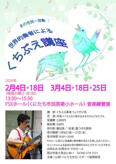- 2月〜3月「冬の一芸塾 くちぶえ講座」(グループ)(国立市)